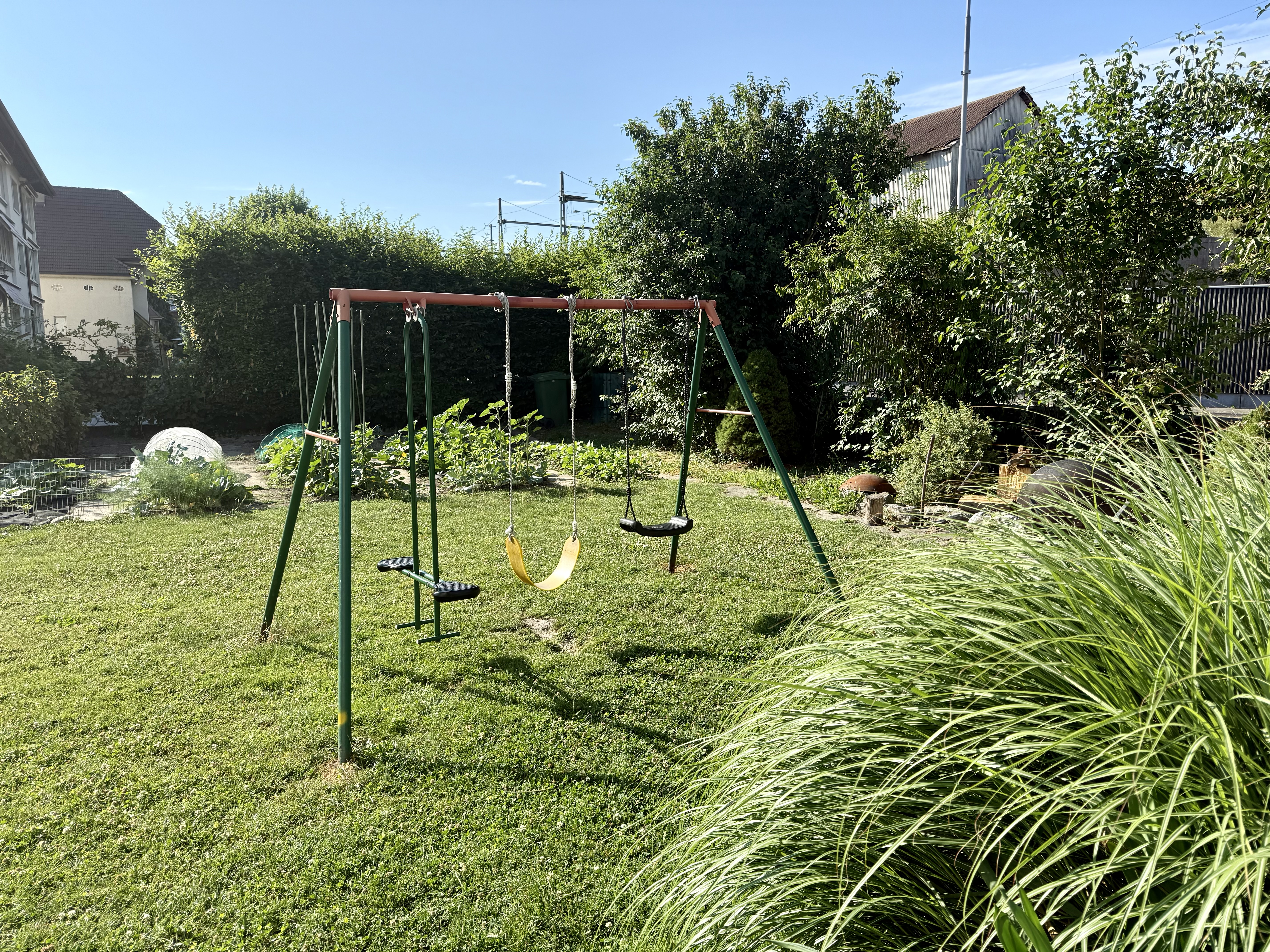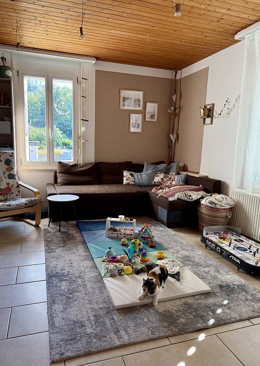 Unsere Wohnung mit grossem Garten liegt idyllisch an der Emmenstrasse in Hasle-Rüegsau. Im Sommer wird der kleine Gartenpool zum Lieblingsort der Kinder, und direkt vor der Haustüre warten die Emme, Wiesen und ein grosser Spielplatz auf uns. Wir sind jeden Tag draussen unterwegs, entdecken Tiere, sammeln Naturmaterialien oder planschen am Wasser. Drinnen wird gebastelt, gespielt oder auch mal gemeinsam gekocht – bei uns wird es nie langweilig.